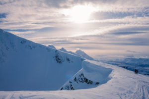 As there are no lifts in the area, you can reach the Lyngen Alps by car, bus, or ferry. Be prepared for an “out of the world” experience in the Lyngen Alps.